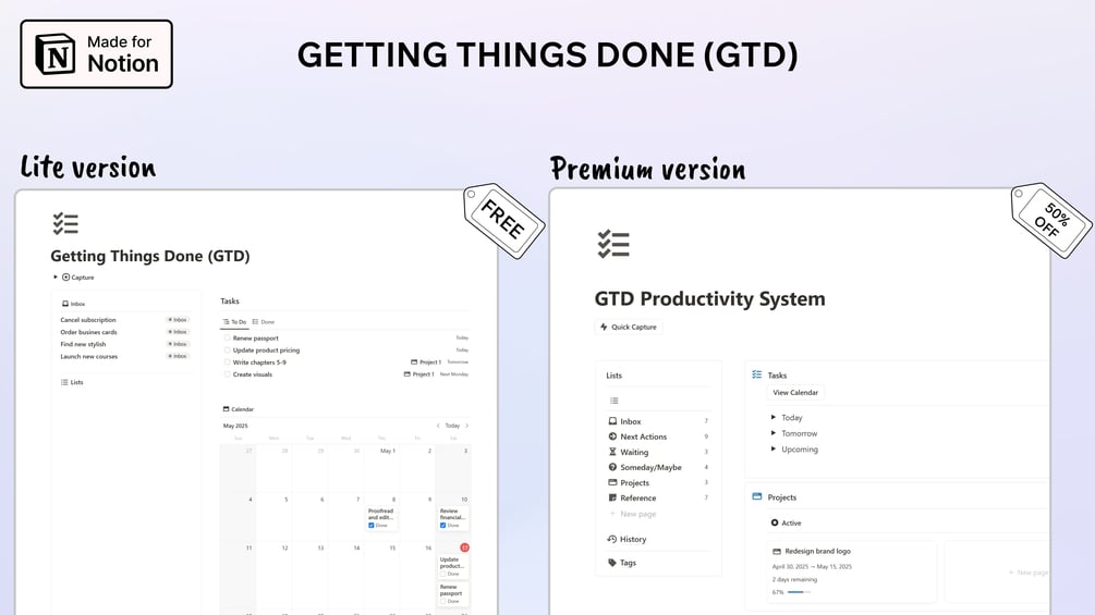 If your tasks, projects, and ideas are all over the place, this ready-to-use Notion GTD template gives you a simple system to finally get organized and productive
