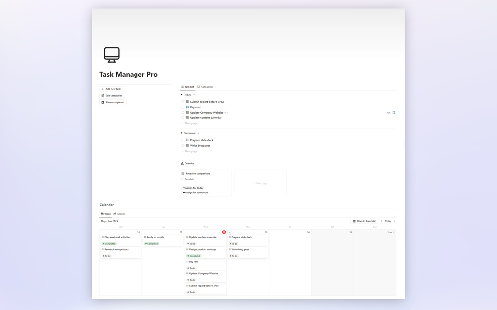 🗓️ View your tasks in weekly and monthly calendar layouts